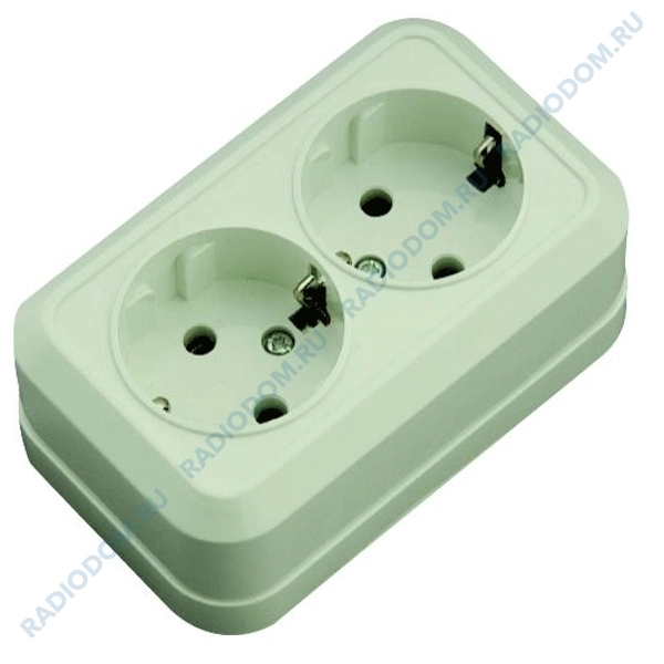 Сетевая розетка наружная с заземлением двухместная белая Kamelya ALFA