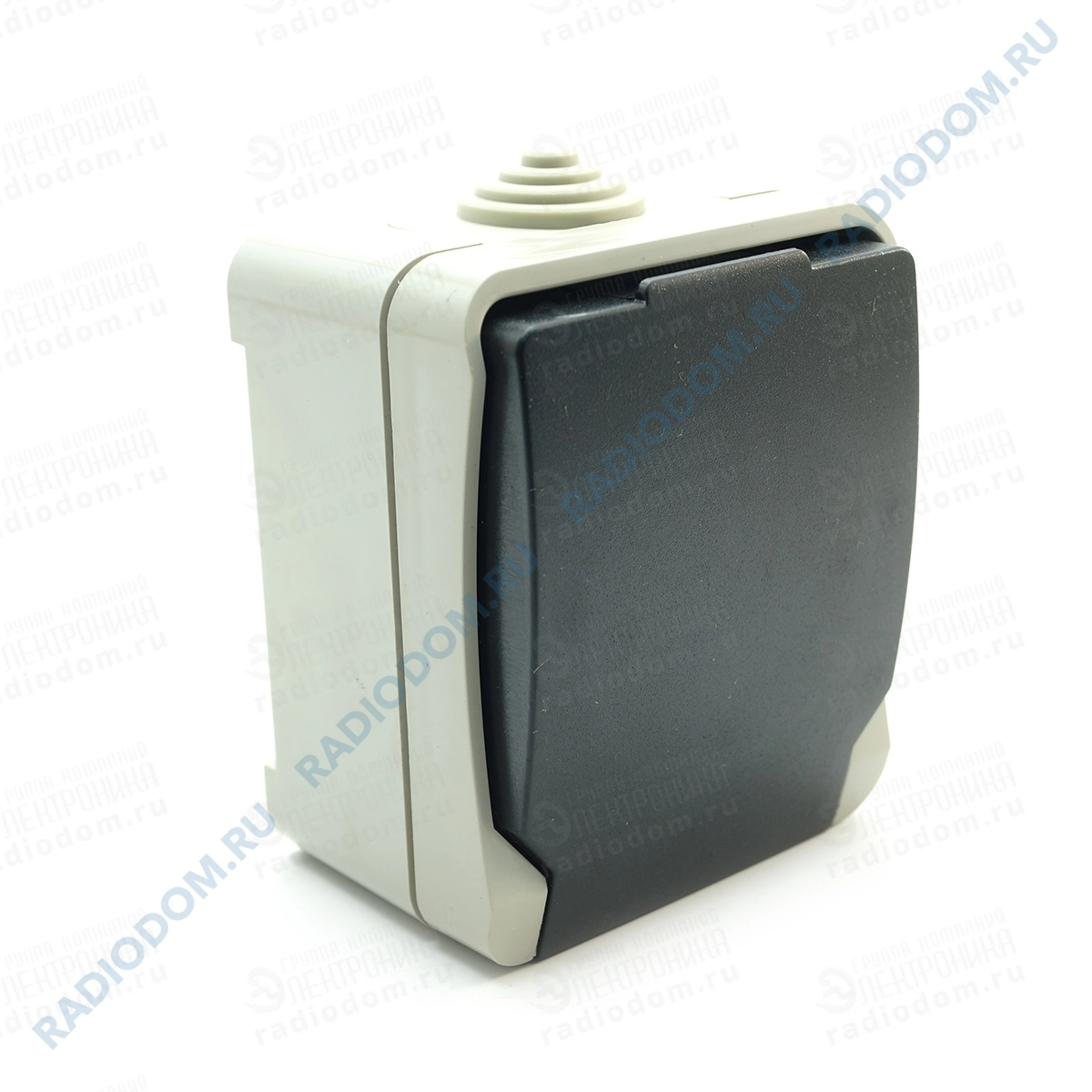 Розетка наружная с заземлением серая c крышкой Сатурн IP54 Smartbuy