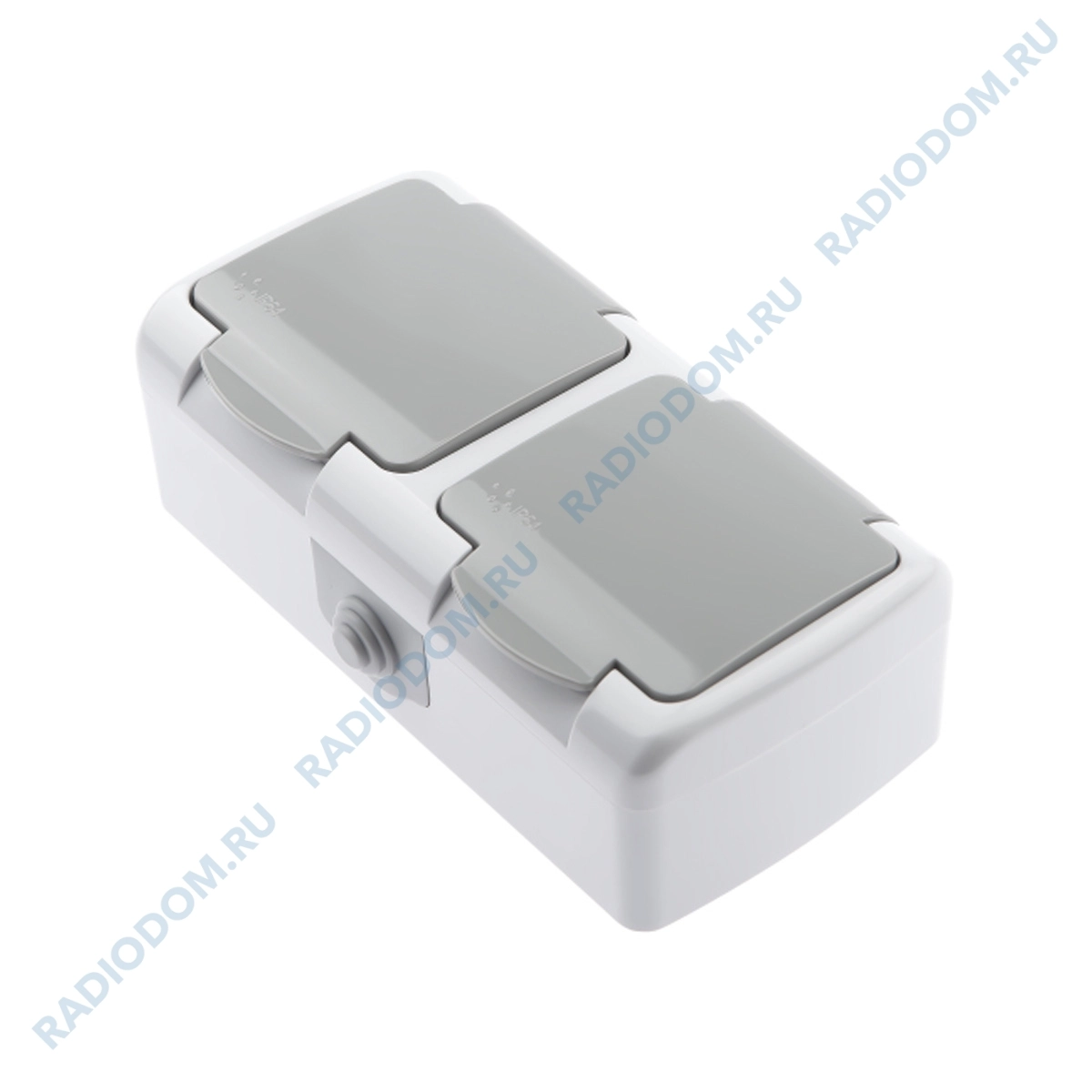 Розетка открытого монтажа 2 КОНТ земля серый Intro Atlantic крышка в сб. IP54 ЭРА