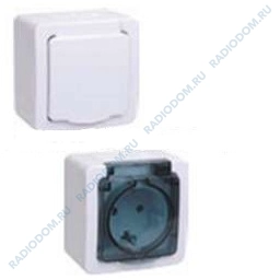 Розетка наружная с заземлением белая c дымчатой крышкой Гермес IP54 iEK