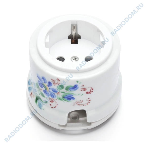 Розетка наружная с заземлением белая с росписью ретро OP12WT.RJ Salvador