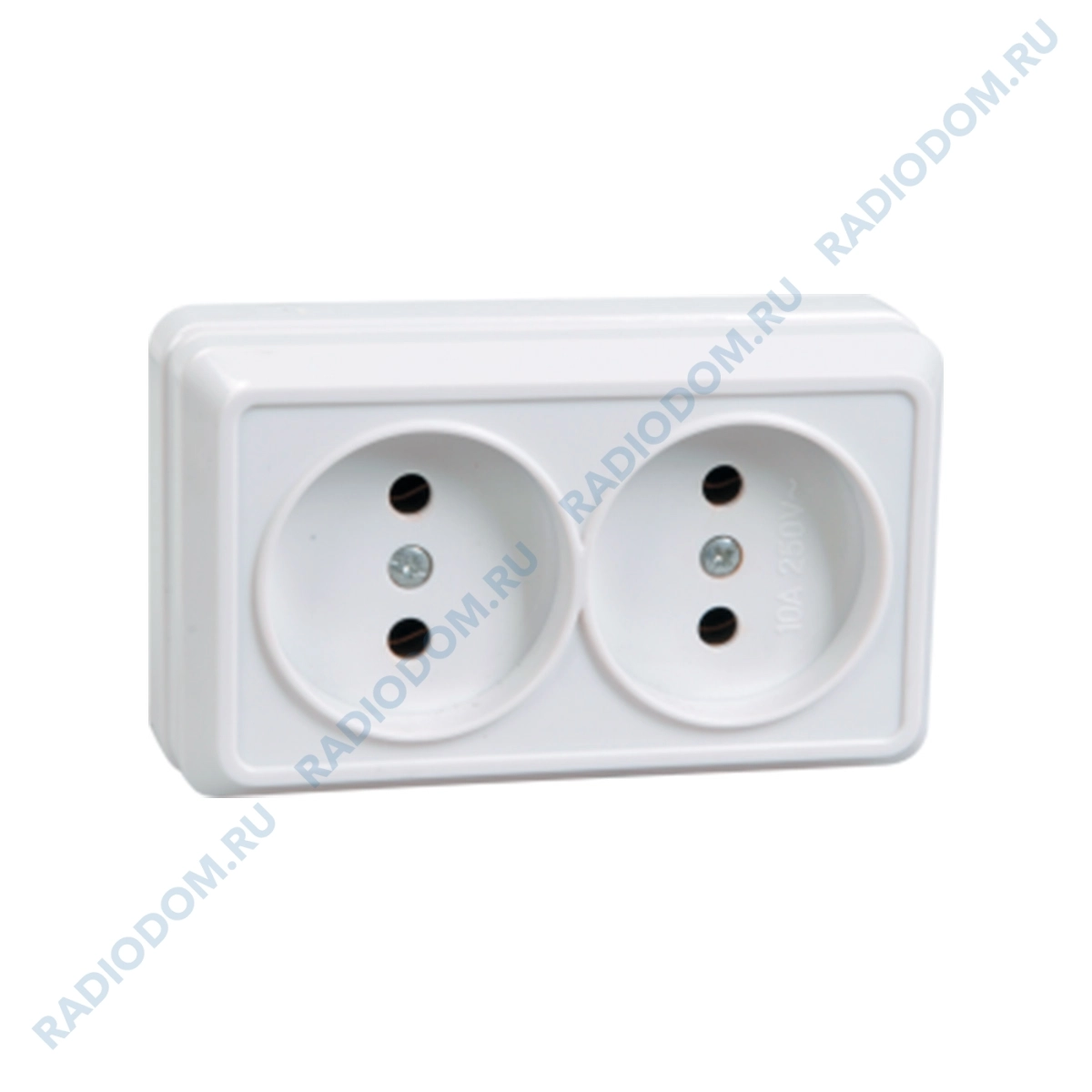 Сетевая розетка открытый монтаж 2 контакта белая Октава РС22-2-ОБ iEK ERO20-K01-10-DC