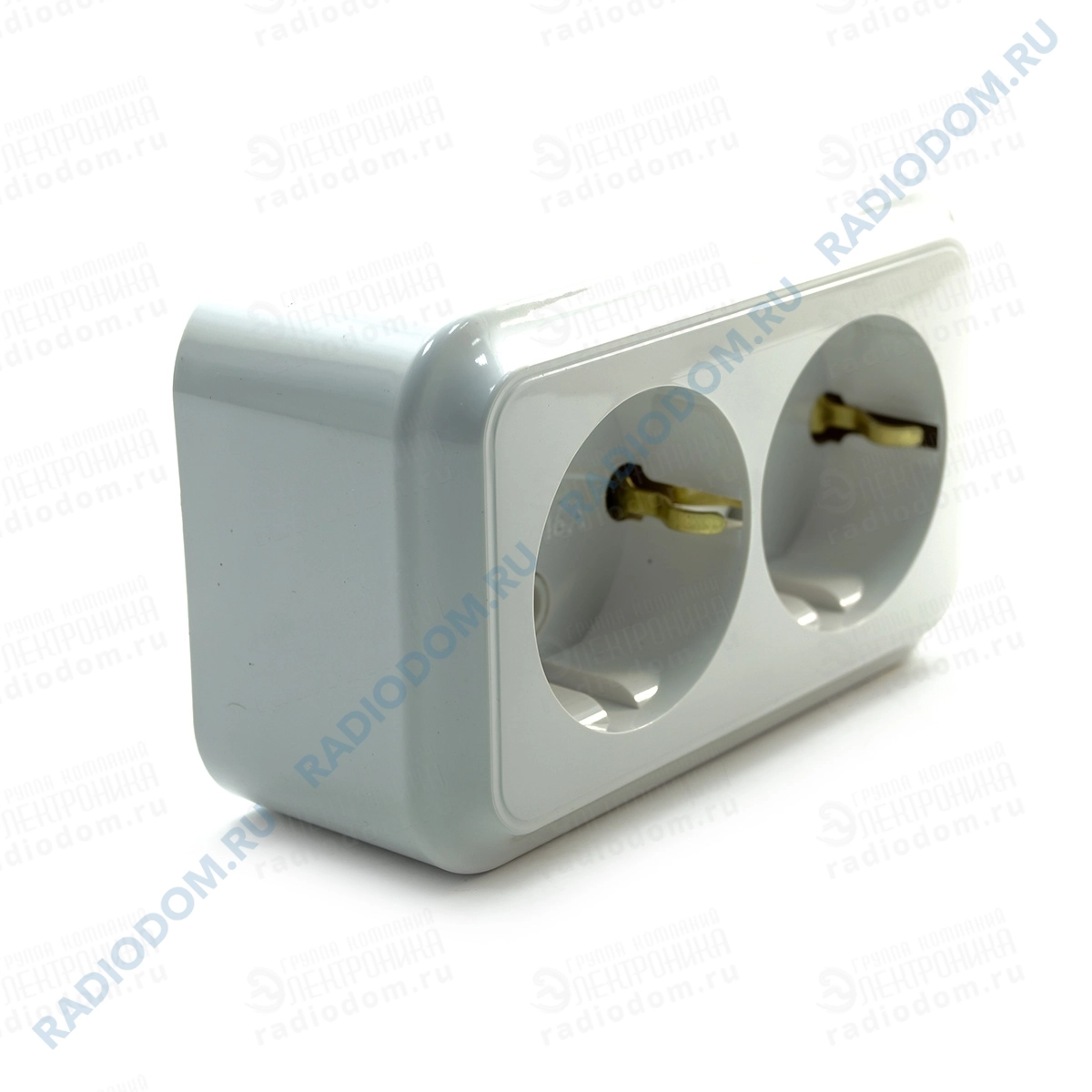 Сетевая розетка наружная с заземлением двухместная белая BYLECTRICA
