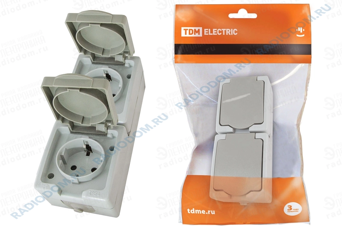 Сетевая розетка открытый монтаж сдвоенная с заземнением вертикальная Вуокса уличная 16А IP54 TDM ELECTRIC SQ1803-0009