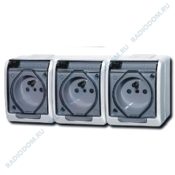 Сетевая розетка открытый монтаж 3 контакта земля белая с крышкой Гермес РСбш23-3-ГПБд iEK ERMP32-K03-16-54-EC