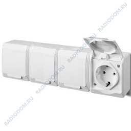 Сетевая розетка открытый монтаж 4 контакта земля белая с крышкой Гермес РСб24-3-ГПБд iEK ERMP42-K03-16-54-EC