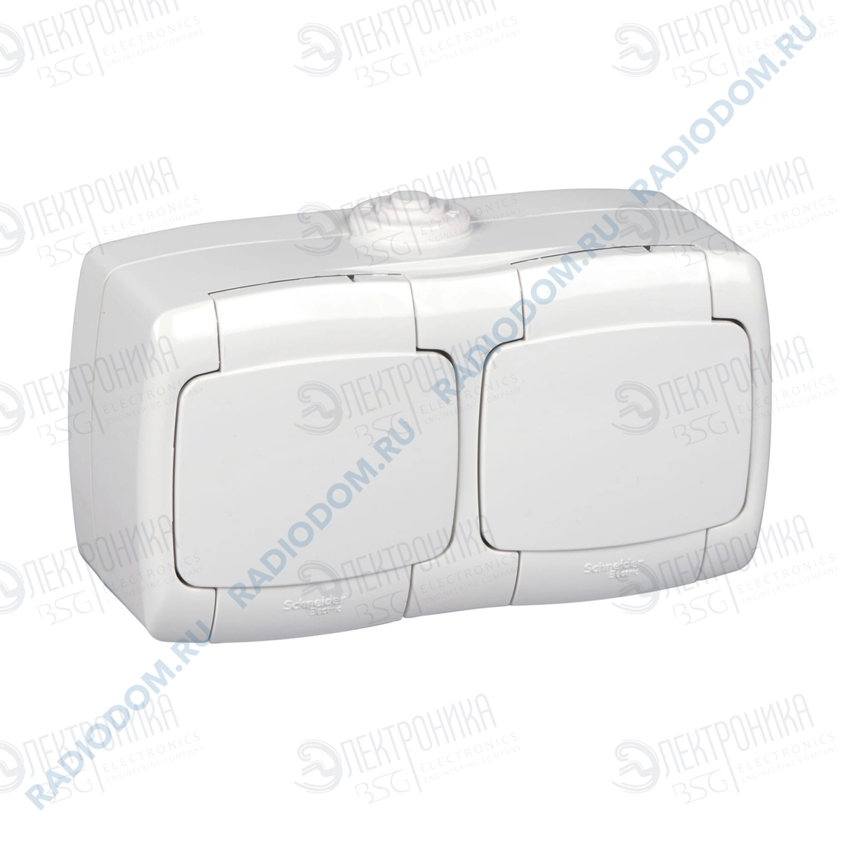 Сетевая розетка наружная с заземлением двухместная белая Рондо Systeme Electric