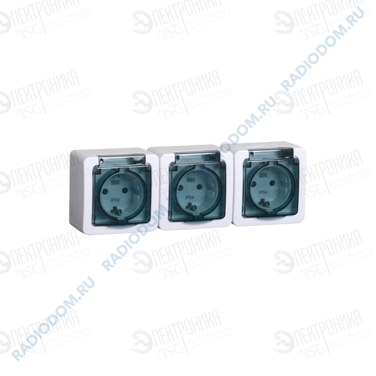 Сетевая розетка открытый монтаж 3 контакта земля белая с крышкой ГЕРМЕС PLUS РСб23-3-ГПБб iEK