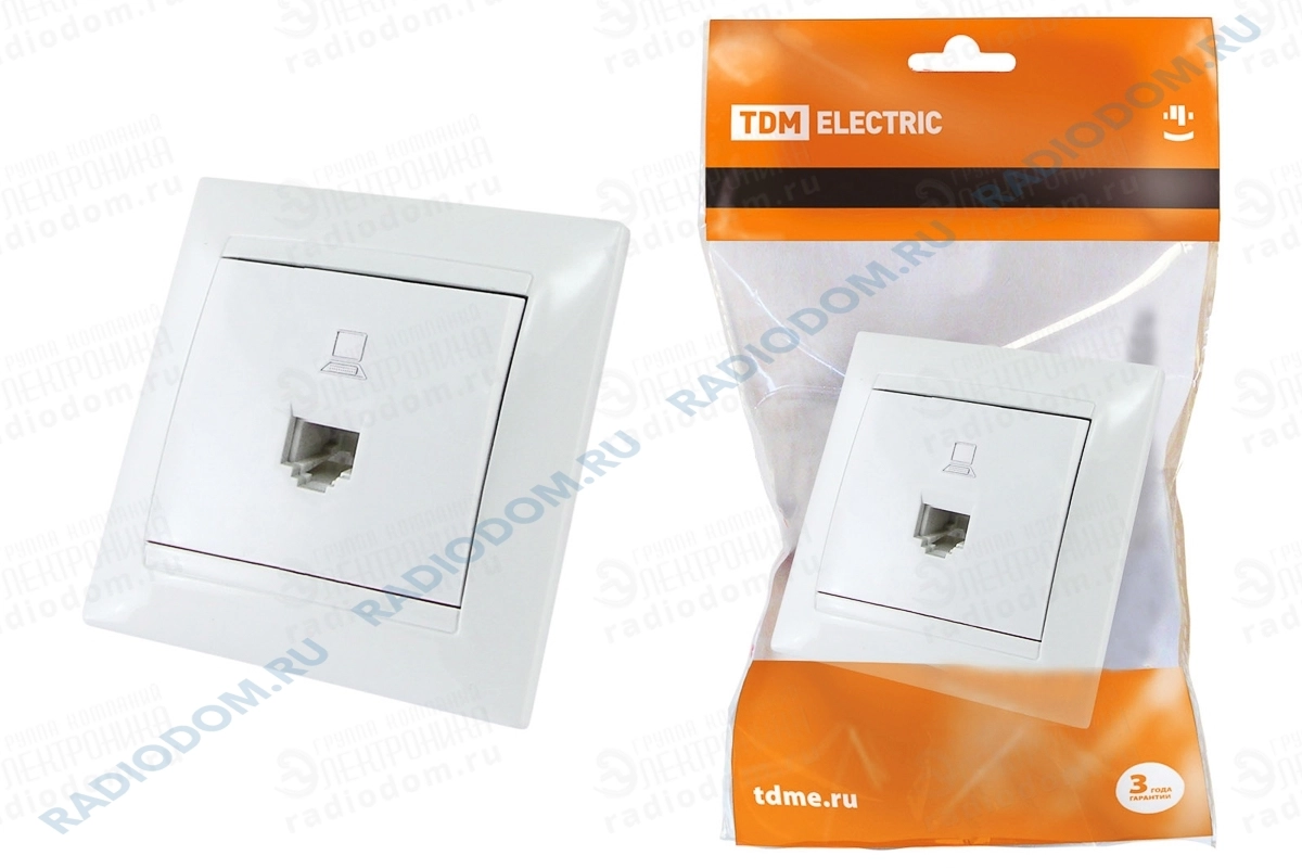 Розетка компьютерная скрытый монтаж 1 гнездо RJ-45 белый Лама TDM ELECTRIC SQ1815-0016