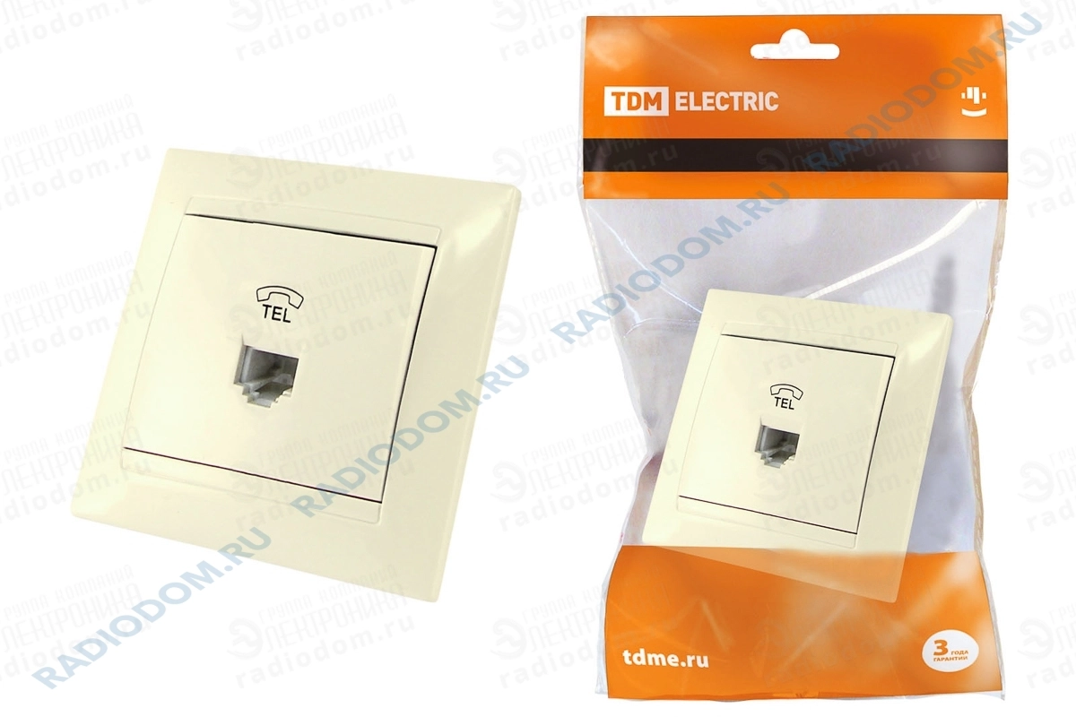 Розетка телефонная скрытая RJ11 слоновая кость Лама TDM ELECTRIC