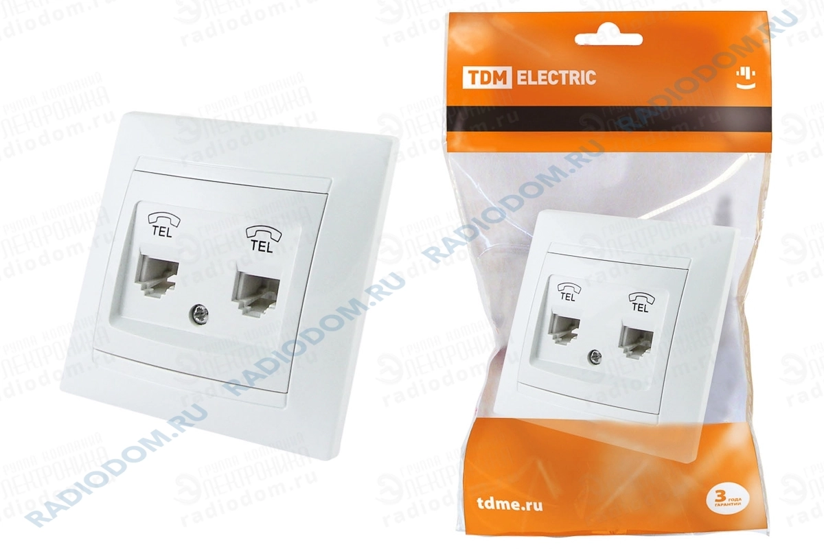 Розетка телефонная двойная скрытая RJ11 белая Лама TDM ELECTRIC