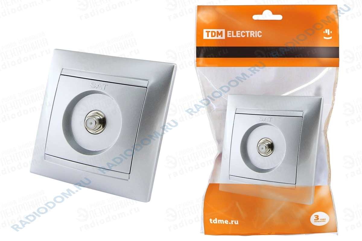 Розетка телевизионная скрытый монтаж 1 гнездо типа F (SAT) серебро металлик серии Лама TDM ELECTRIC SQ1815-0221