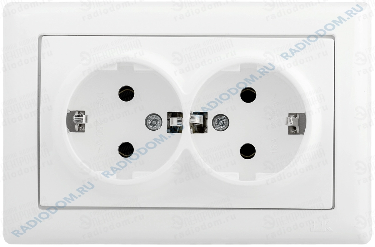 Розетка скрытая с заземлением двойная белая BOLERO iEK