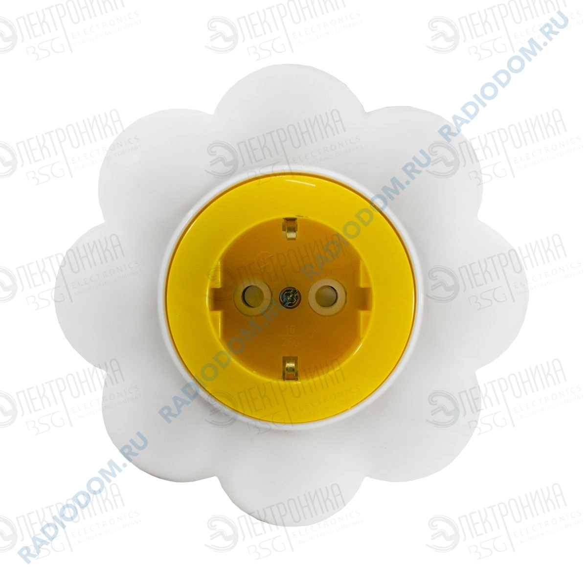 Розетка скрытой установки с заземлением желтая/белая Happy Ромашка Kranz