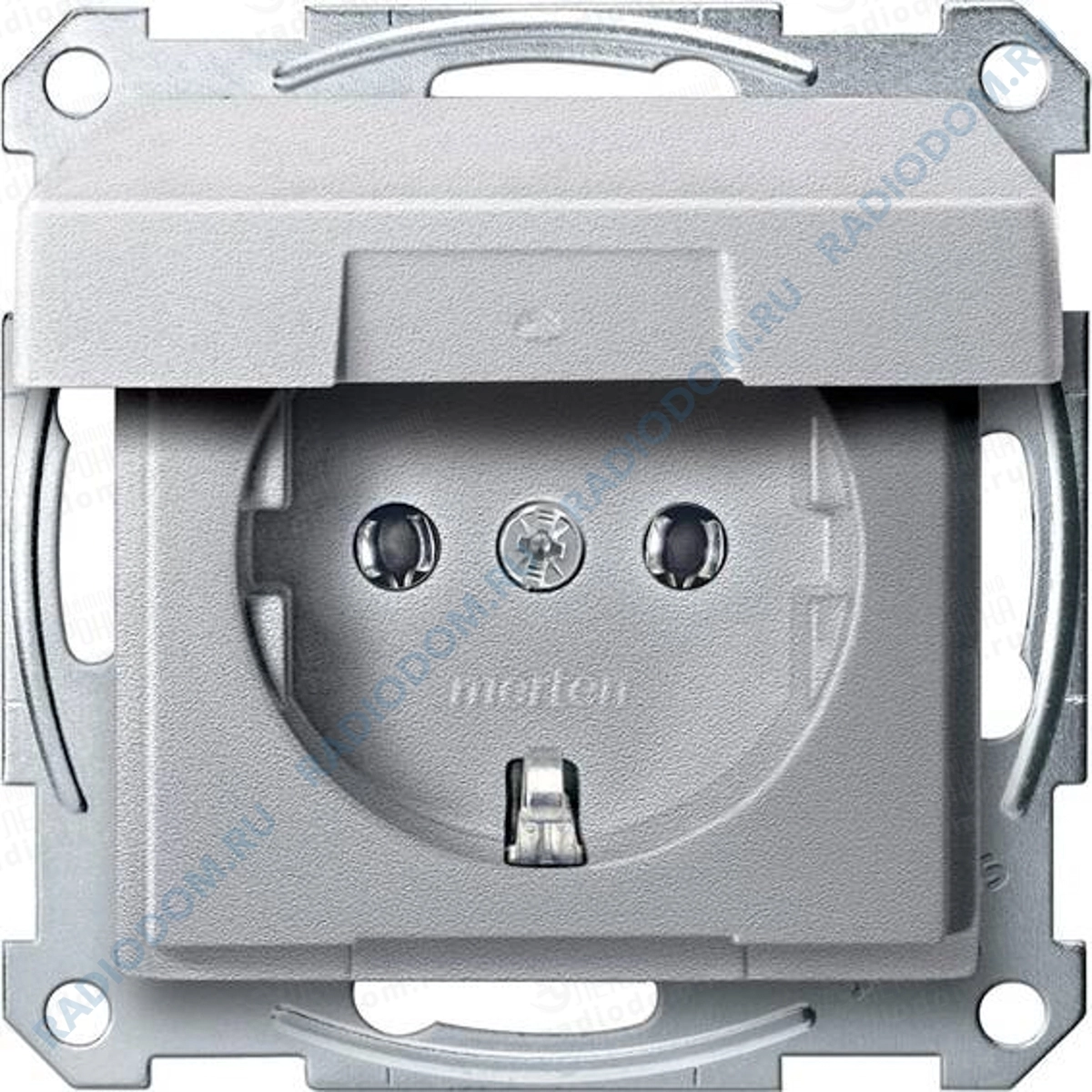 Розетка скрытая с заземлением алюминий Merten с крышкой Systeme Electric