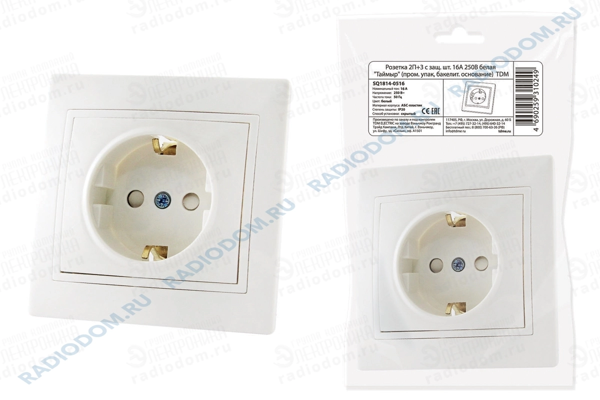 Розетка скрытая с заземлением белая Таймыр TDM ELECTRIC