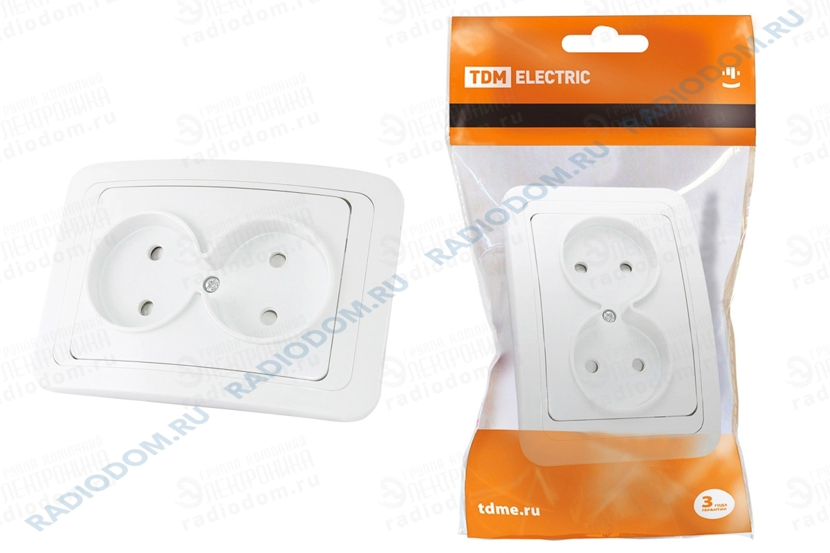 Розетка скрытая двойная белая Валдай TDM ELECTRIC