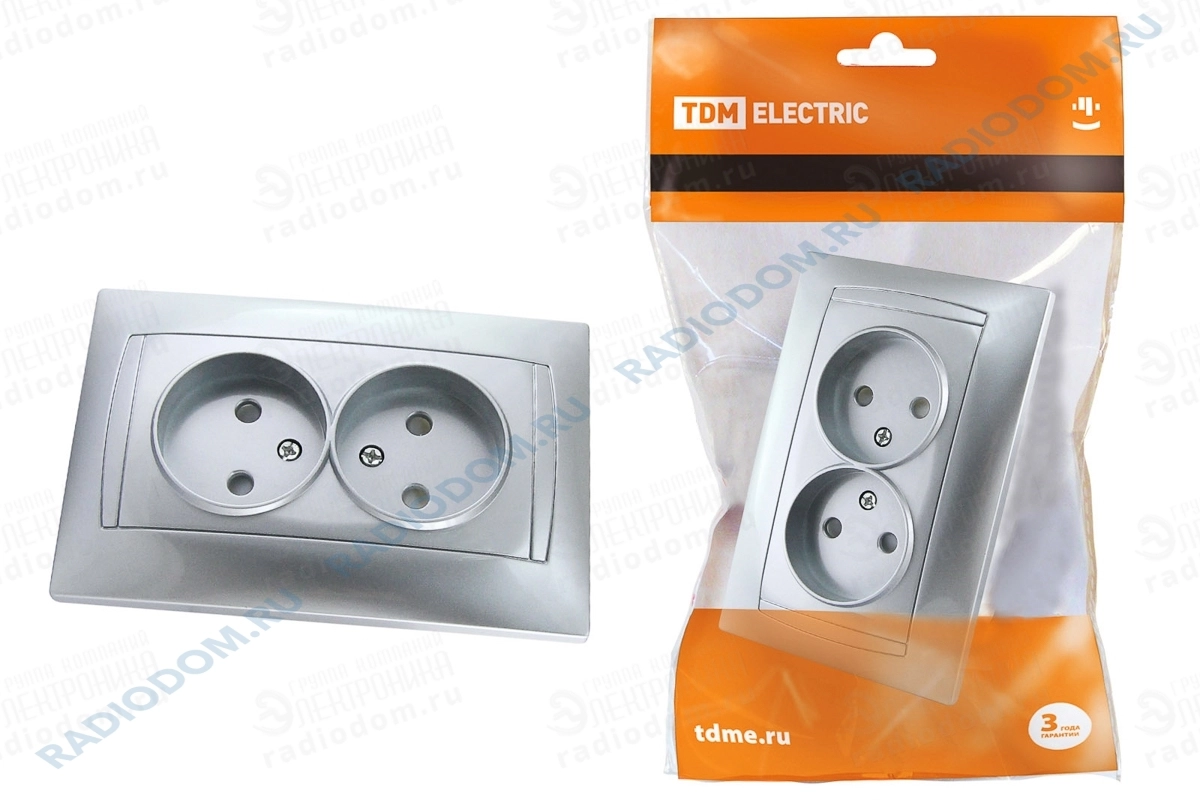 Розетка скрытая двойная серебристый металлик Лама TDM ELECTRIC
