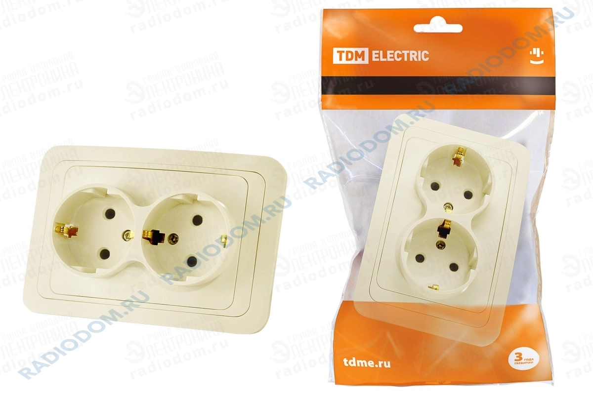 Розетка скрытая с заземлением двойная слоновая кость Валдай TDM ELECTRIC