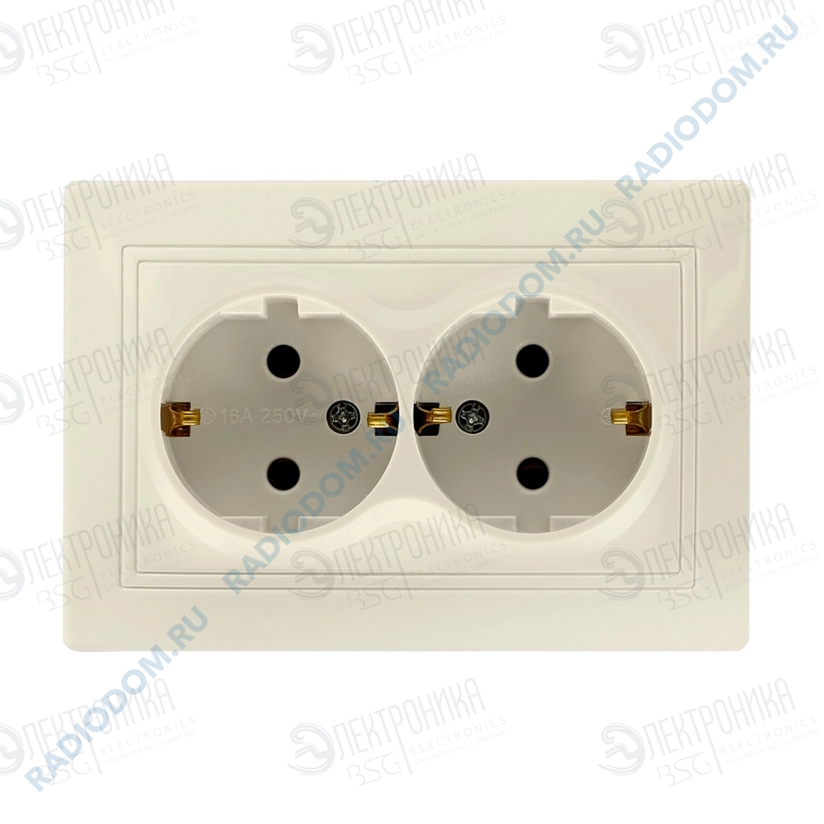 Розетка 2-местная с заземлением 16А бежевая керамика "Венера" Smartbuy