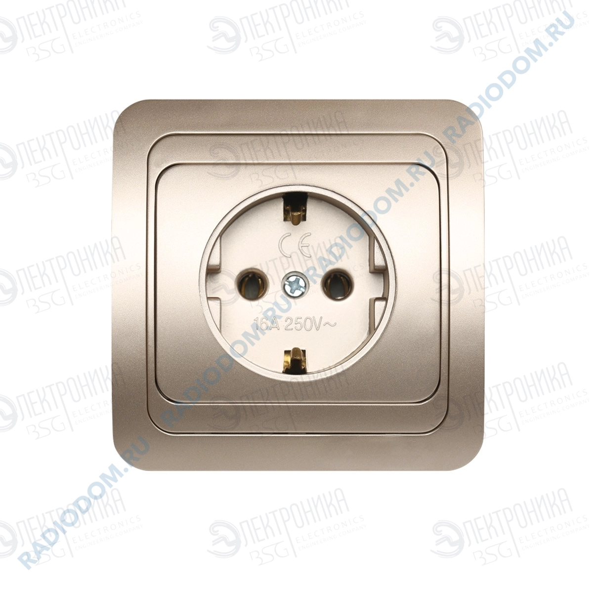 Розетка 1-местная с заземлением 16А шампань керамика "Марс" Smartbuy