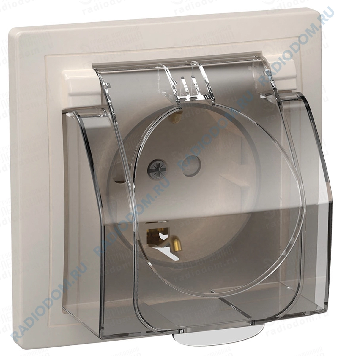 Розетка скрытая с заземлением белая Кварта с крышкой IP44 iEK