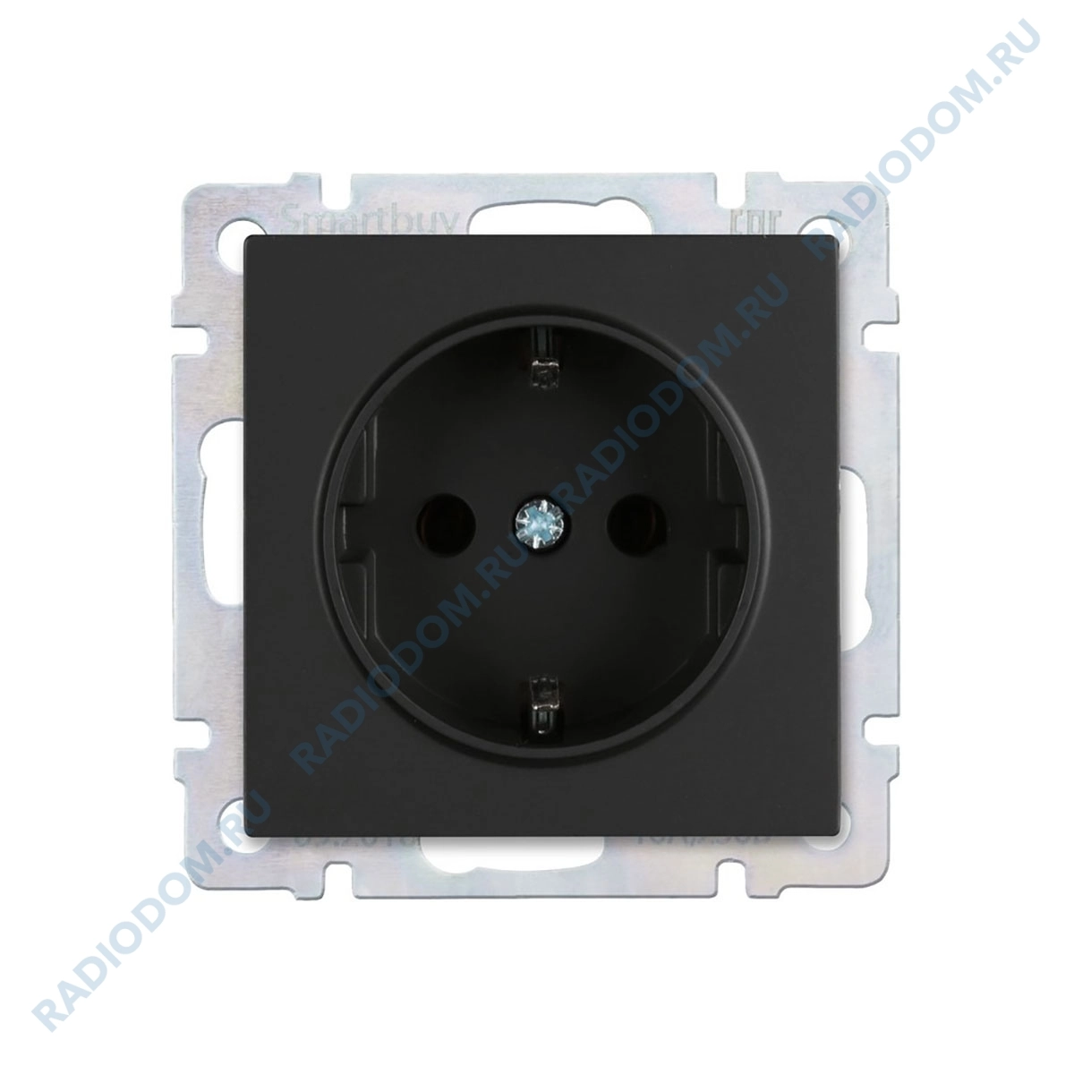 Розетка скрытая с заземлением черная Нептун Smartbuy
