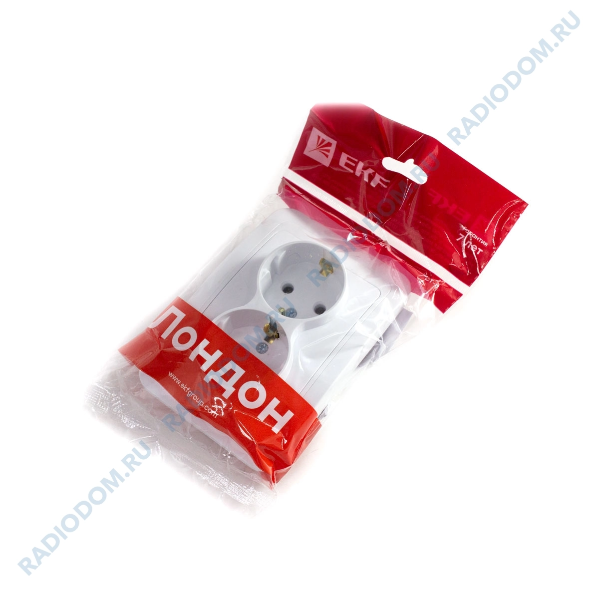 Розетка скрытая двойная с заземлением белая Лондон EER16-128-10C EKF