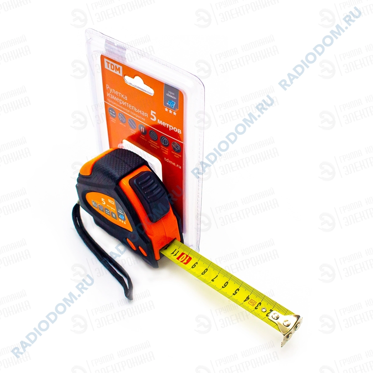 Рулетка прорезиненный корпус оранжевый 5м "Алмаз" TDM ELECTRIC