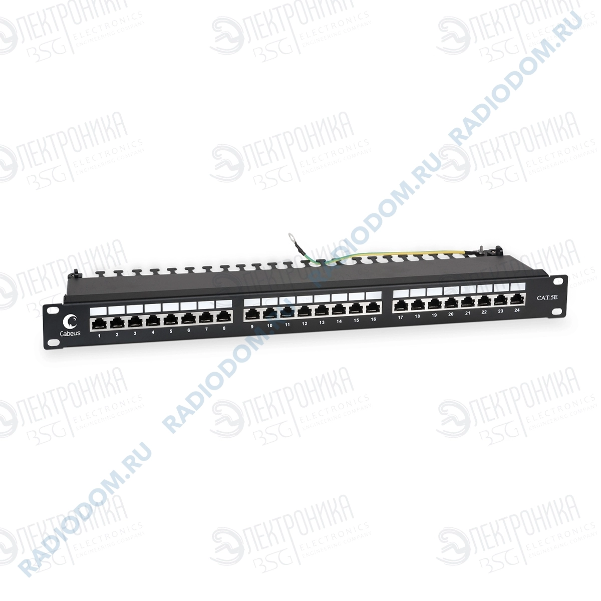 Патч-панель 19'' 1U 24 порта RJ-45, категория 5e, Dual IDC PL-24-Cat,5e-SH-Krone IDC Cabeus полностью экранированная