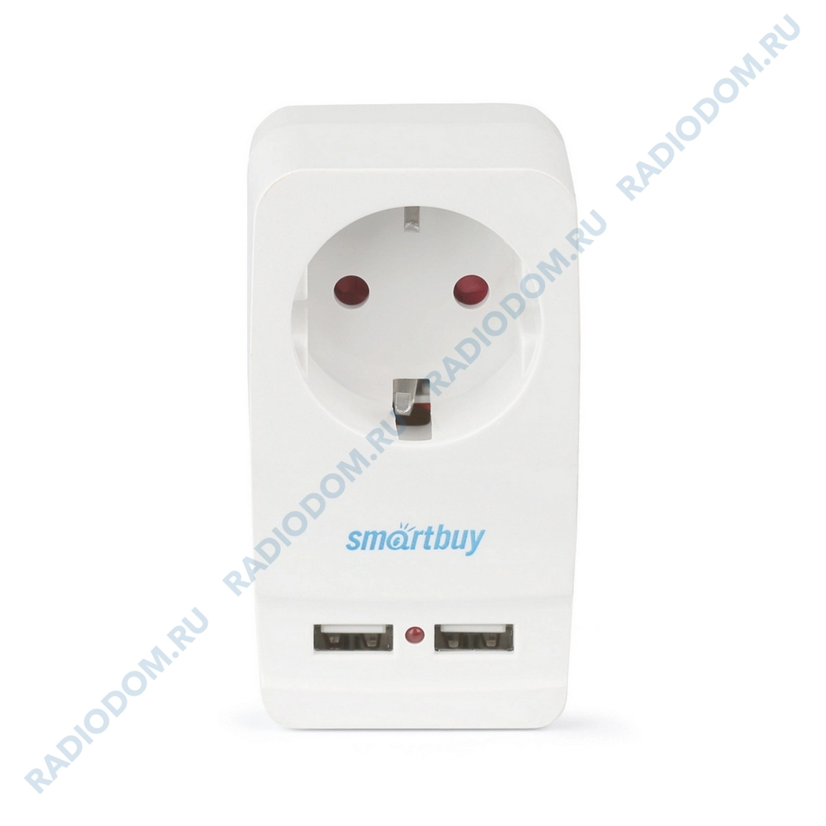 Адаптер оснащен двумя USB портами, которые обеспечивают возможность подзарядки мобильных устройств (сотовые телефоны, планшеты), поддерживающих зарядку от USB порта. Материал корпуса - негорючий пластик с антипиренами, устойчив к механическим повреждениям, соответствует требованиям пожаробезопасности.