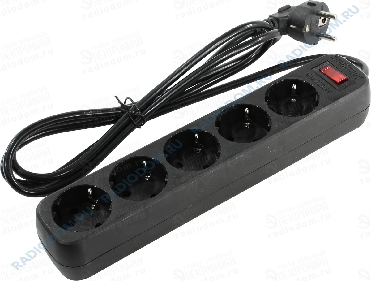 Сетевой фильтр 5 гнезд pilot 1,8 м One BSP-18-K черный Smartbuy