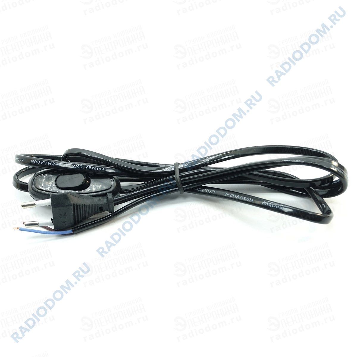 Шнур сетевой 2*0,75 с выключателем плоская вилка 1,7м черный Smartbuy