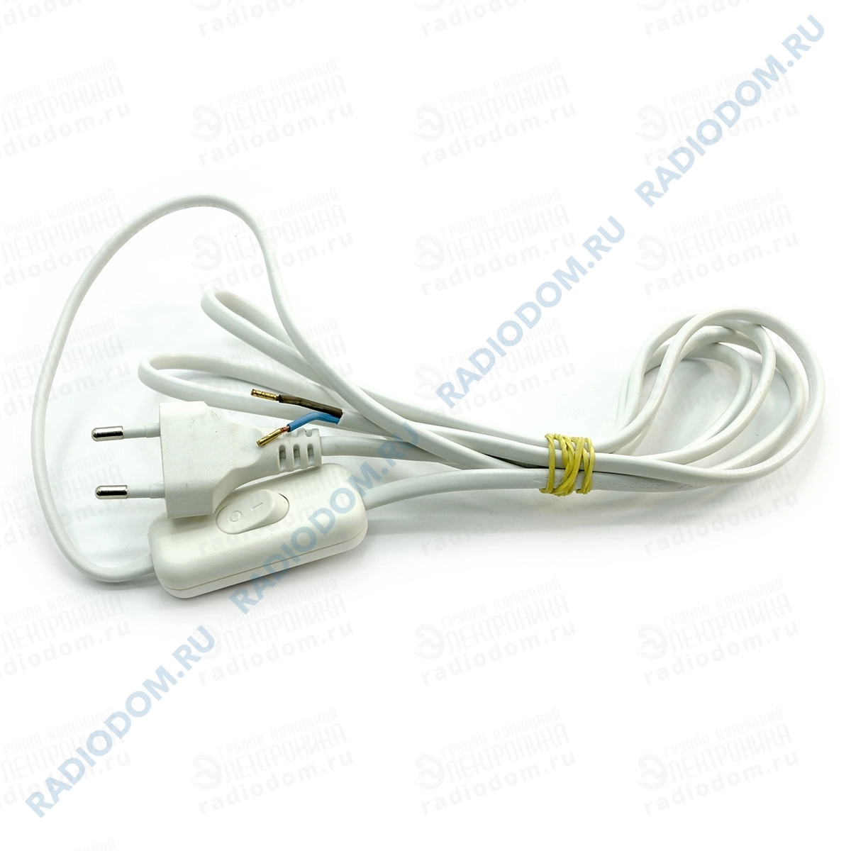 Шнур сетевой 2*0,75мм с выключателем 2 метра плоская вилка белый iEK
