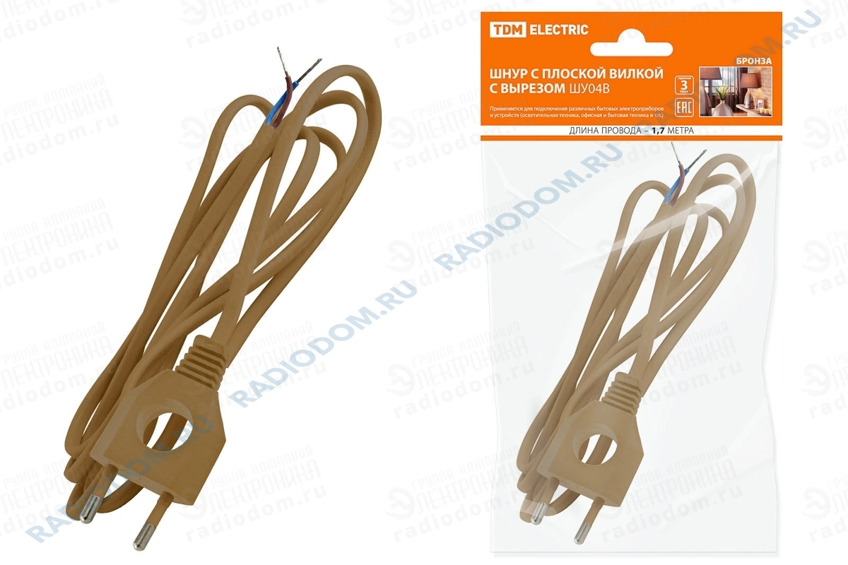 Кабель питания 2x0,75мм бронза 1,7 м ШУ04 TDM ELECTRIC