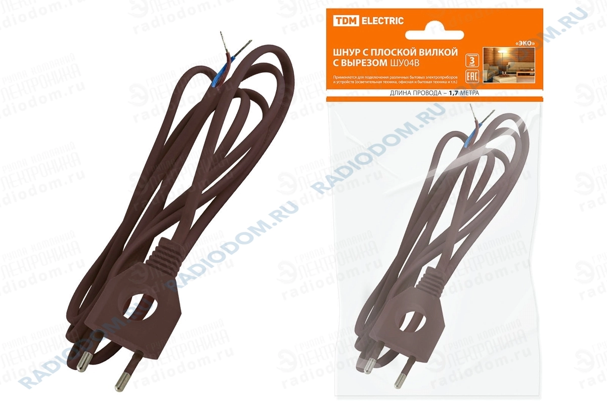 Кабель питания 2x0,75мм коричневый 1,7 м ШУ04 TDM ELECTRIC