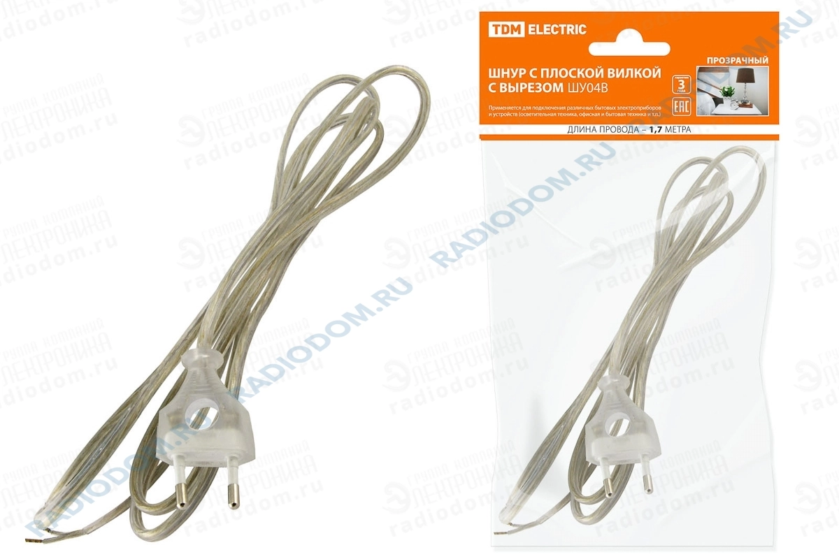 Кабель питания 2x0,75мм прозрачный 1,7 м ШУ04 TDM ELECTRIC