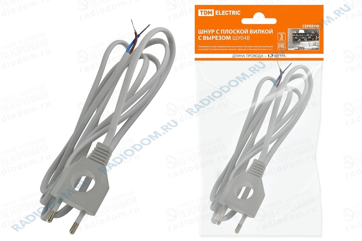 Кабель питания 2x0,75мм серебро 1,7 м ШУ04 TDM ELECTRIC