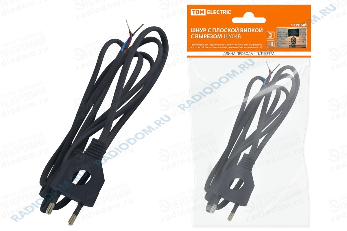 Кабель питания 2x0,75мм черный 1,7 м ШУ04 TDM ELECTRIC