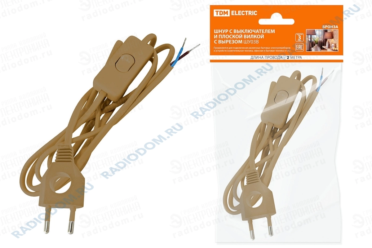Кабель питания 2x0,75мм с выключателем бронза 2,0 м ШУ03В TDM ELECTRIC