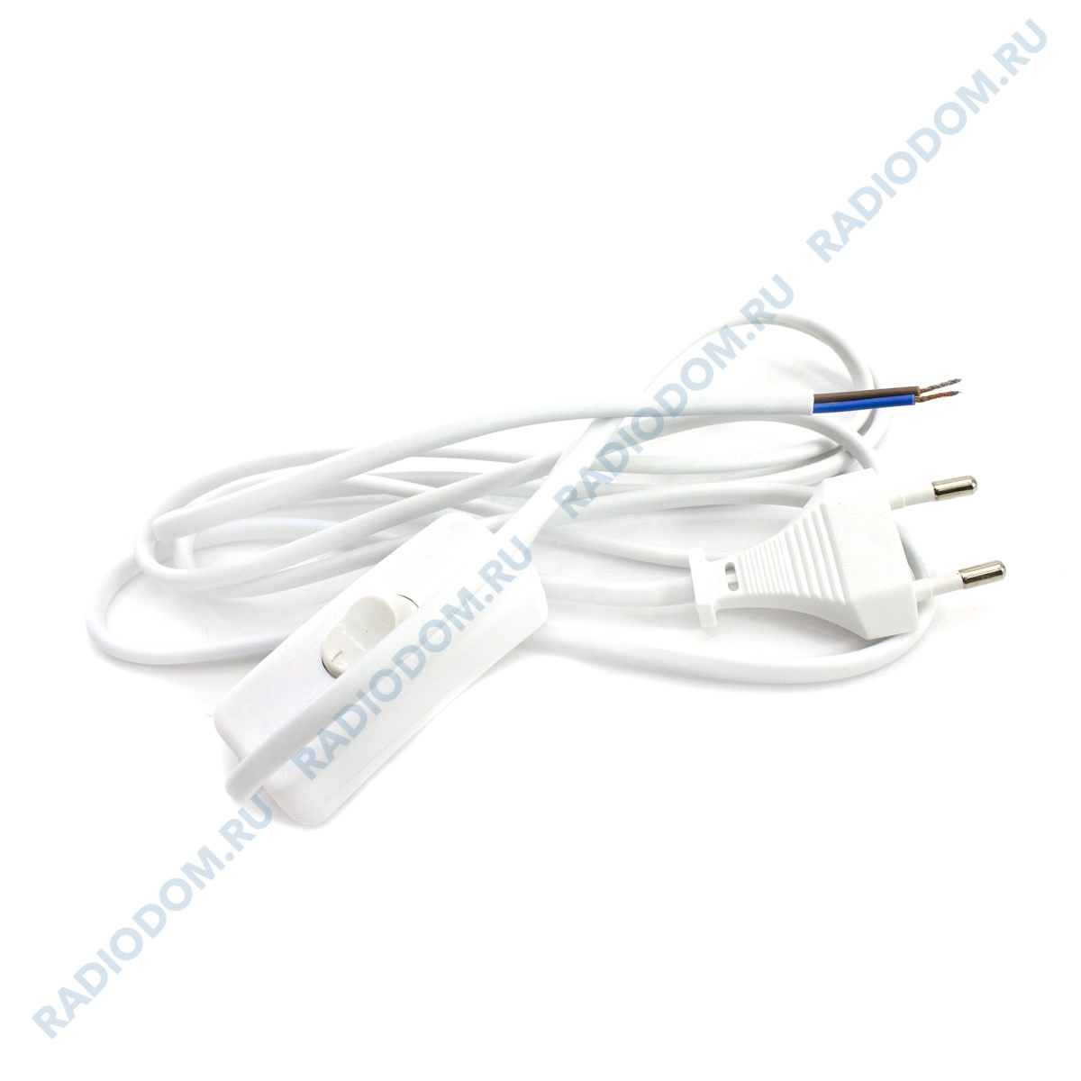 Шнур сетевой с выключателем предназначен для подключения бытовых приборов, осветительной техники и т. д. Шнур состоит из провода ШВВП сечением 0,75 мм², укомплектованного литой неразборной плоской евровилкой, номинальным током 4 А, с подготовленными (зачищенными и лужеными) контактами, посередине провода расположен выключатель в корпусе из ABC пластика.