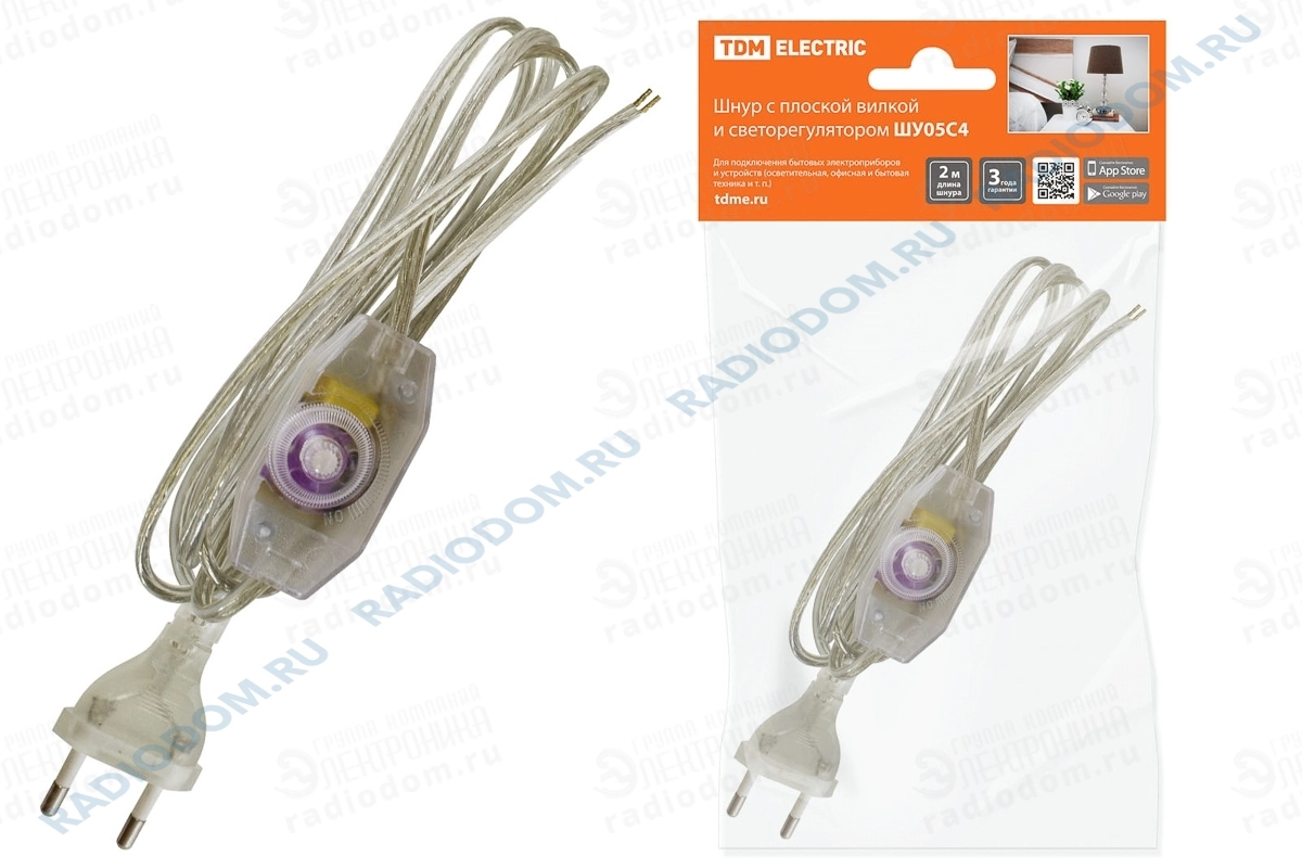 Кабель питания 2x0,75мм с диммером прозрачный 2,0 м TDM ELECTRIC