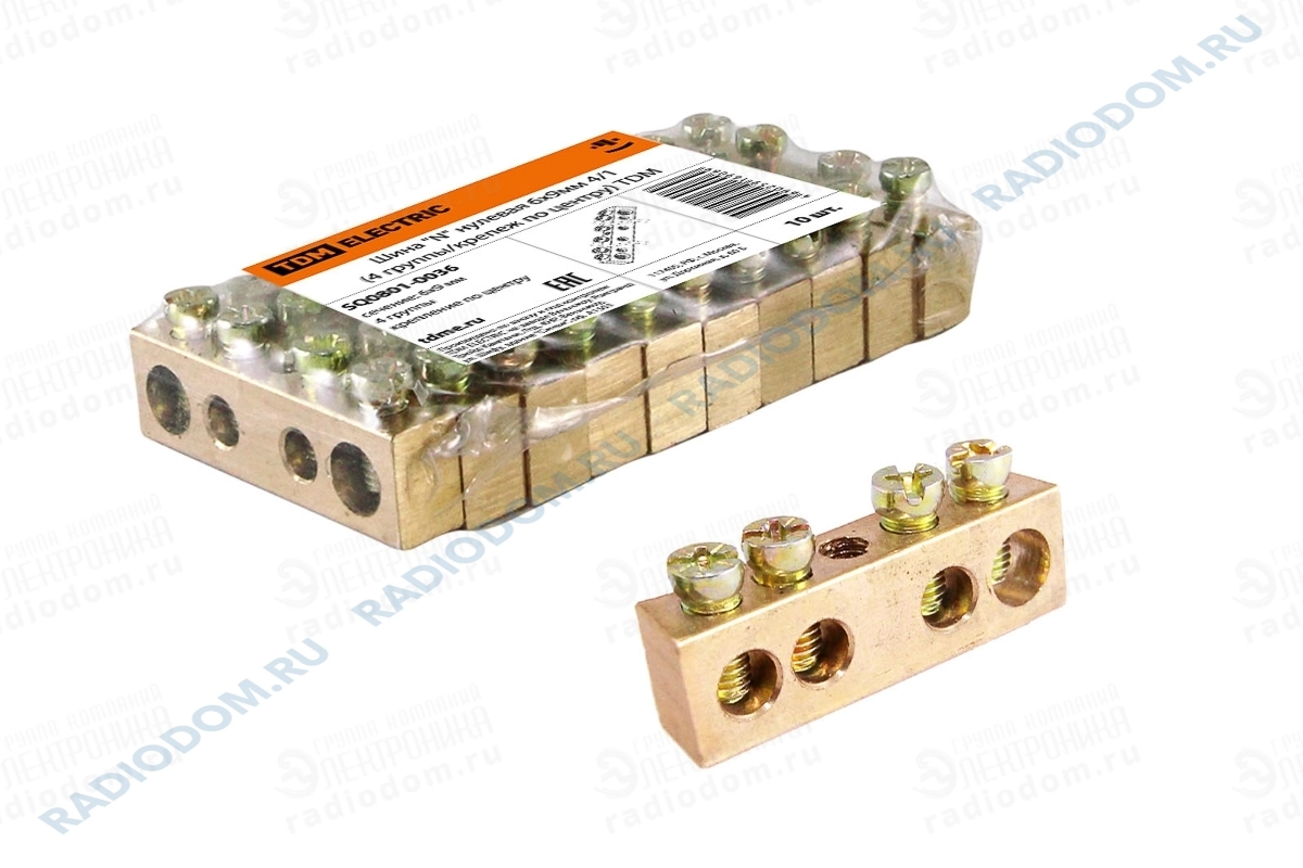 Шина нулевая 6x9 4 группы крепеж по центру TDM ELECTRIC
