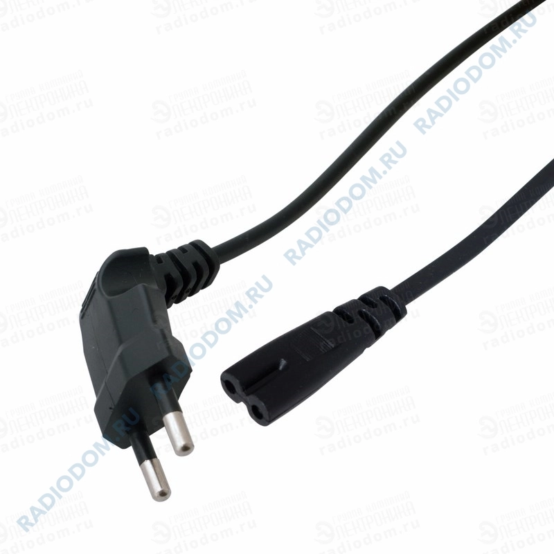 Кабель питания 2x0,75мм евроразъем С7 черный угловой 1,5 м Rexant
