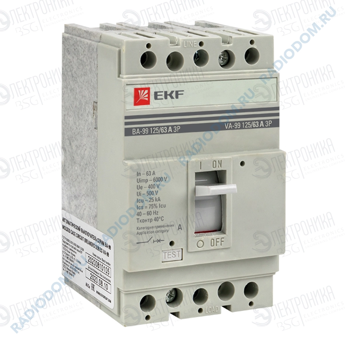 Автоматический выключатель 16А 3P ВА-99/63 mccb99-125-63 EKF