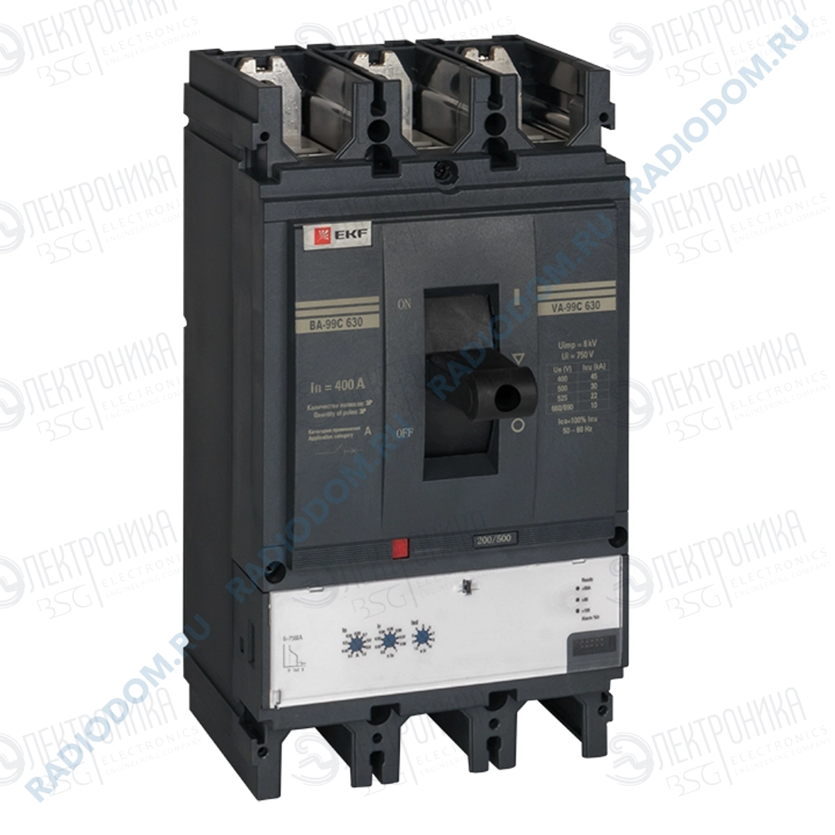 Выключатель ВА-99С выполнен в виде моноблока и состоит из основания и крышки с фальш-панелью, в которой имеется окно для рукоятки управления и толкатель кнопки «Тест» – для проверки механизма отключения выключателя.