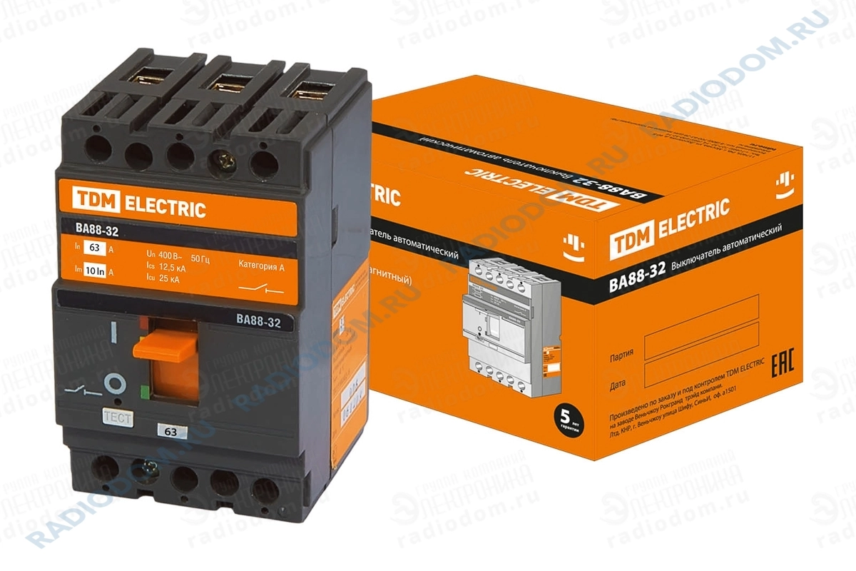 Автоматический выключатель 63А 3P BA88-32 25кА TDM ELECTRIC SQ0707-0006