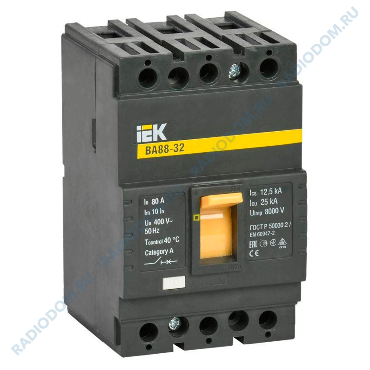 Автоматический выключатель 80А 3P BA88-32 25кА IEK SVA10-3-0080