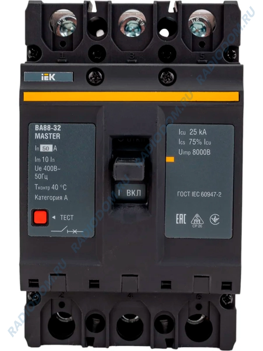 Автоматический выключатель в литом корпусе ВА88 MASTER предназначен для защиты электрических сетей от токов короткого замыкания, токов перегрузки, недопустимых снижений напряжения, а также для проведения тока в нормальном режиме. Автоматические выключатели производятся в 5 типоразмерах, оснащены термомагнитным расцепителем на токи от 16 до 800А и электронным расцепителем на токи от 125 до 800А. Рабочее напряжение 400/690 В.