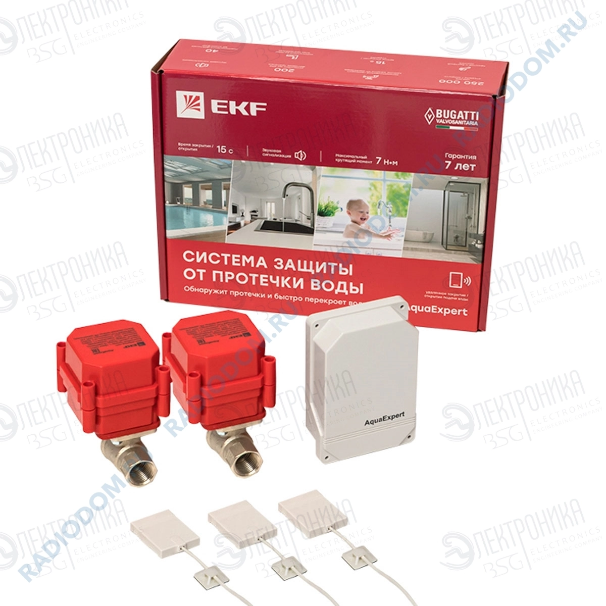 Система AquaExpert предназначена для автоматического отключения подачи воды и выдачи звукового оповещения при возникновении протечек воды в системах водоснабжения, отопления и канализации. При попадании воды на датчик блок управления выдаст сигнал на шаровые электроприводы для отключения подачи воды. Датчики протечки воды устанавливаются в местах вероятного появления воды: ванные комнаты, кухни, санузлы, душевые и тд.